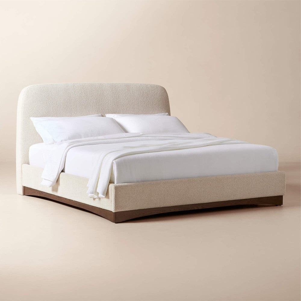 Auburn Warm White Boucle Upholstered King Bed