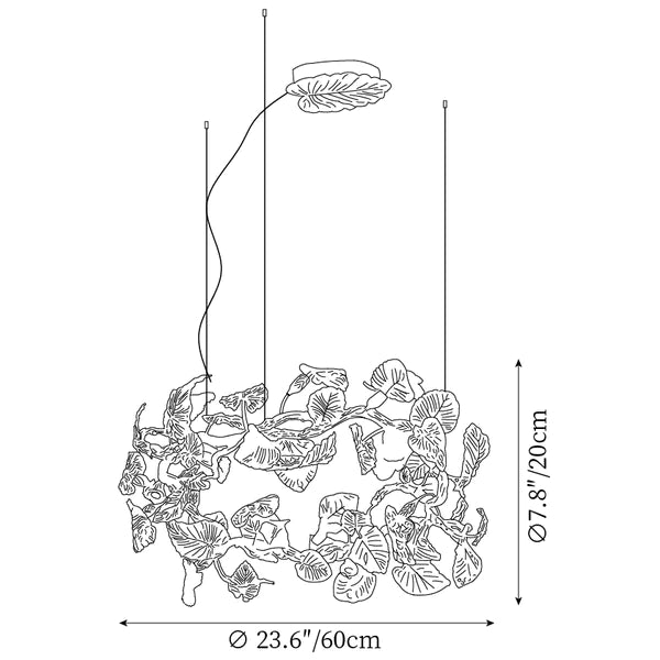 This spectacular chandelier features a gorgeous, innovative design. Each piece from this collection is handcrafted from Copper and glass. Calathea embodies the gentle and delicate movement but is imbued with the vital energy that pervades every element of nature, making it unique. |
