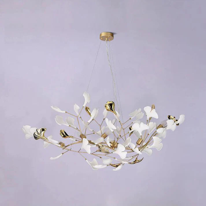This ceramic ginkgo tree petal chandelier shows its luxurious style in overall design, material, and manufacturing technology.  The lamp body is covered with exquisite ceramic petals, which reflects the perfect combination of lighting design and natural plants.