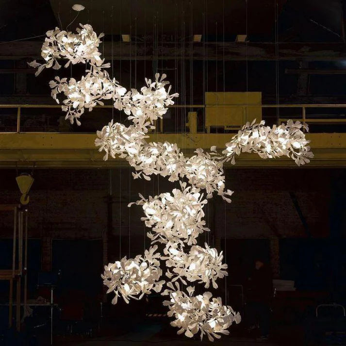 Ceramic Ginkgo Cascading B (Spiral) Branch Chandelier