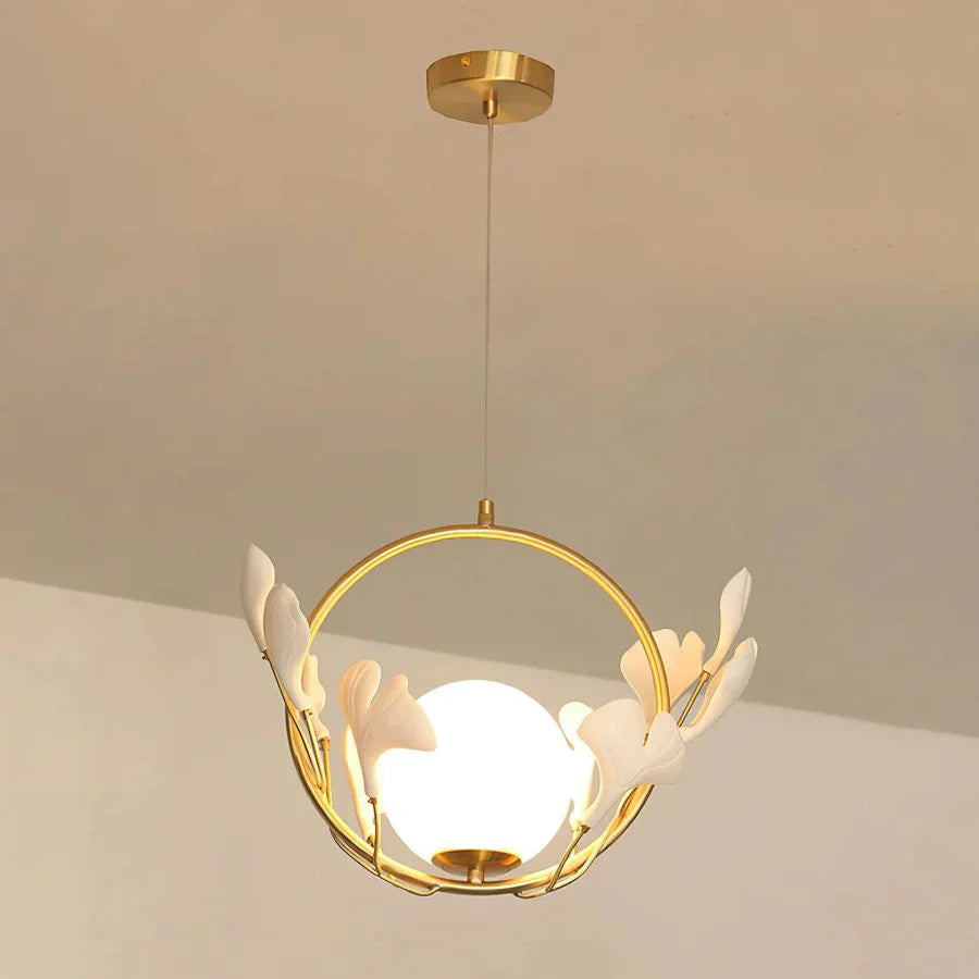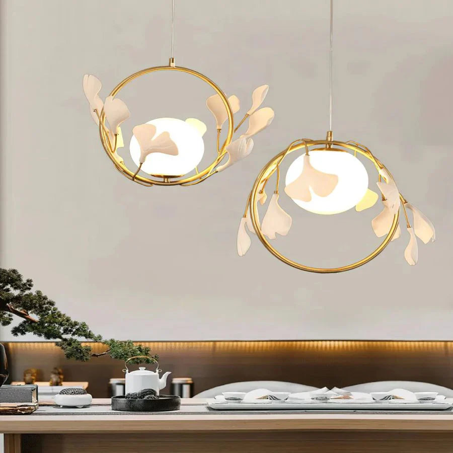 Ceramic Ginkgo Rings Linear Branch Chandelier