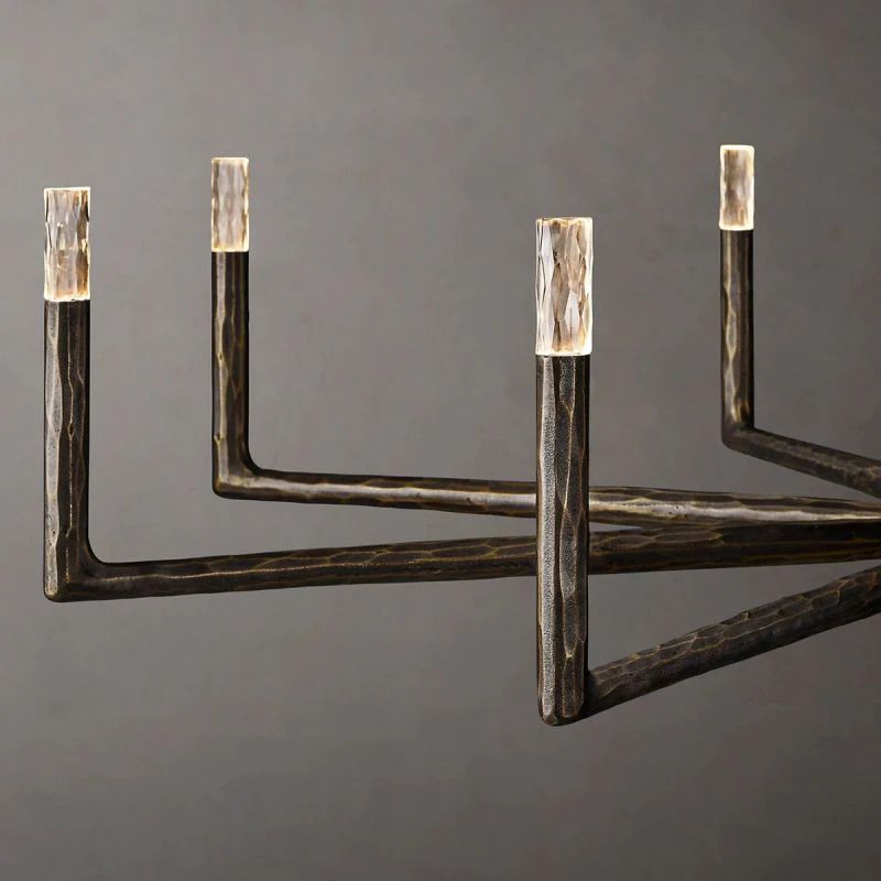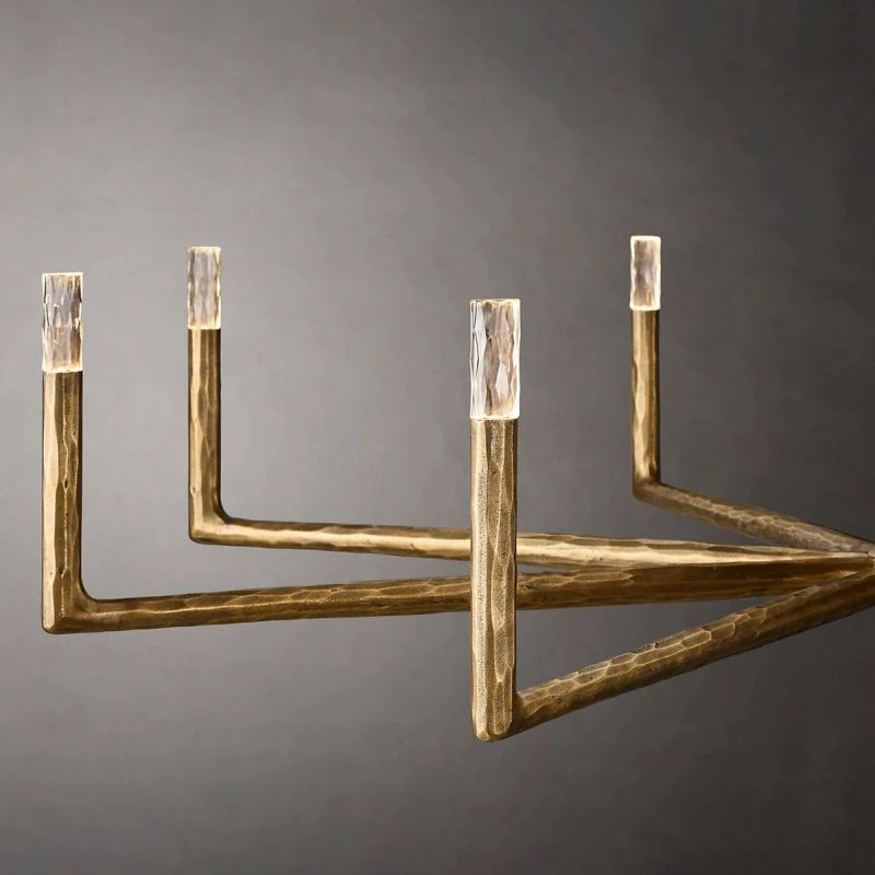 our collection employing an ancient fabrication process, artisans hand hammer the metal bars to reveal an alive, imperfect and organic texture, a counterpoint to the frame's slender, tapered silhouette.