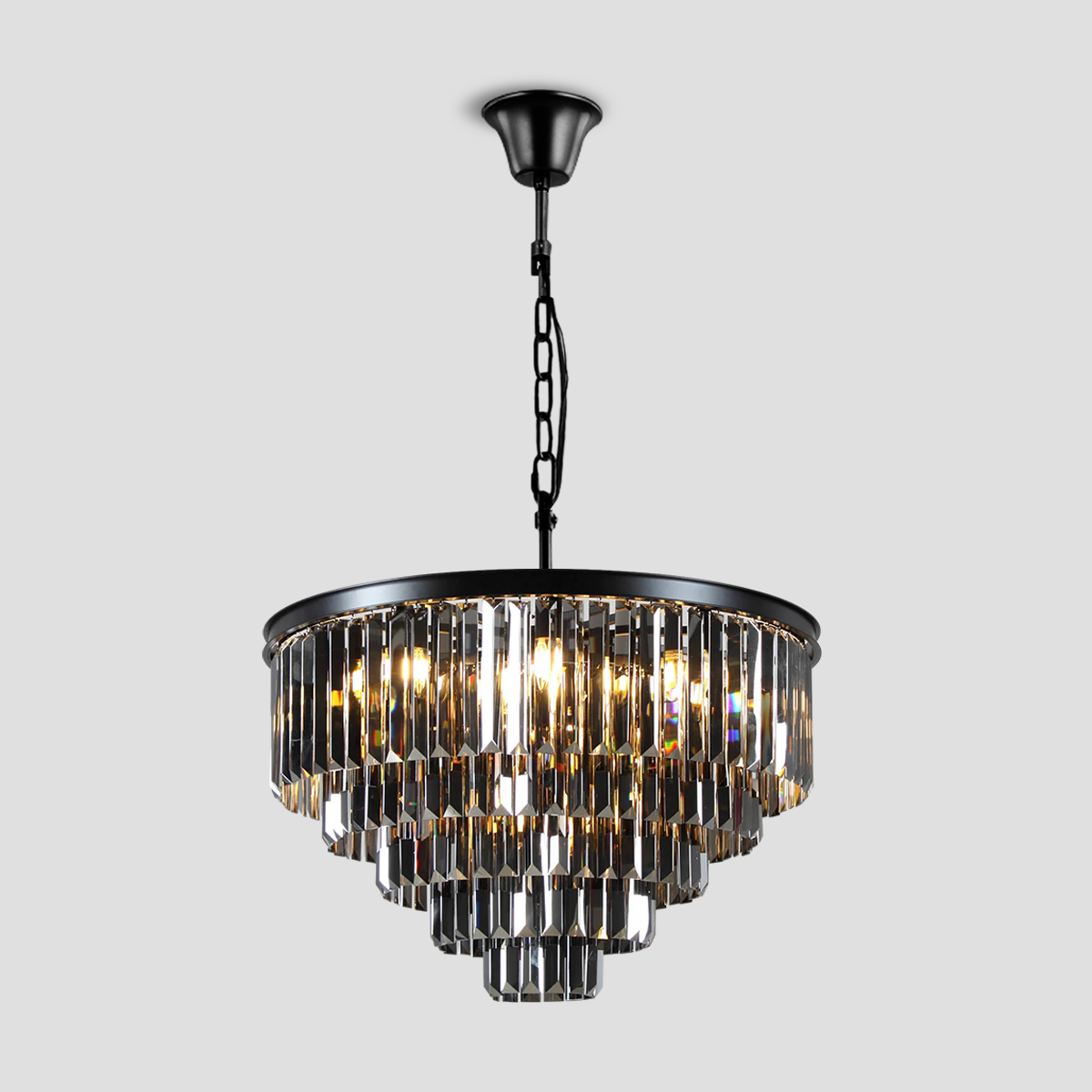 Della  Multi-Tier Clear/Smoke Crystal Round Chandelier