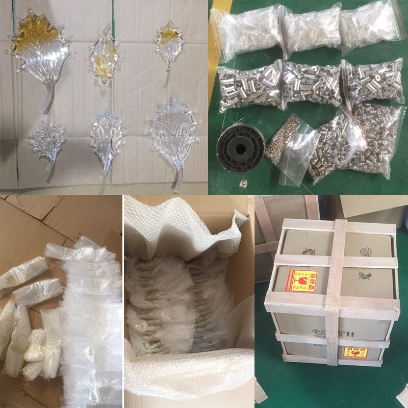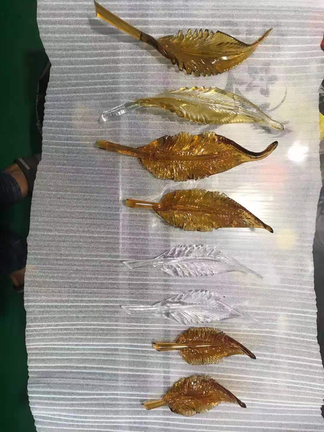 Enhance your home or business with this stunning Hand Blown Glass Feather chandelier parts. The chandelier features exquisite hand-blown glass feathers that delicately hang from the ceiling, creating a captivating and elegant display. The chandelier is perfect for hotel lobbies, shopping malls, villas, or any other upscale location. The glass feathers are available in various colors, allowing you to choose the perfect one to match your decor. The chandelier is easy to install and comes with all the necessary hardware.