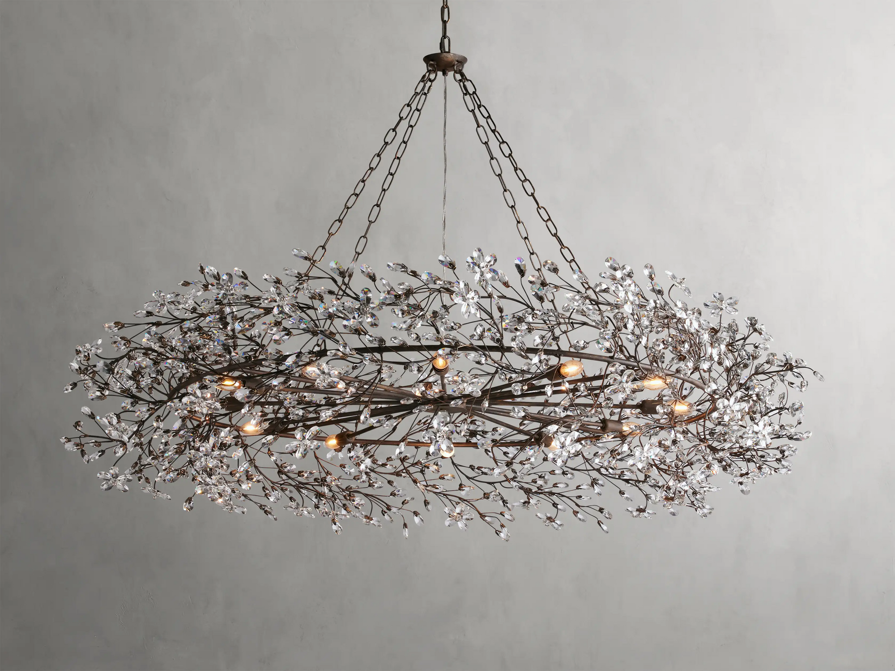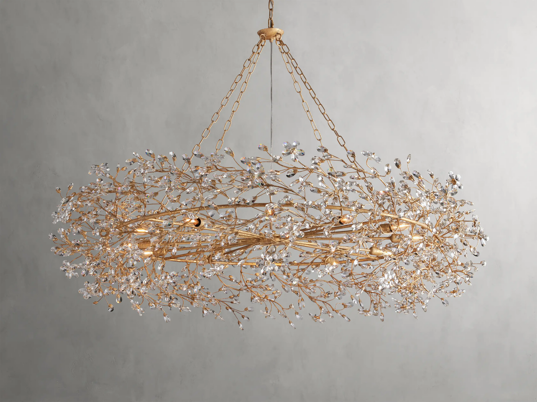 Luxurious crystal florals and drops illuminate each branch-like form of our elegant Fiela Lighting Collection. Crafted by our artisan partners in Italy from solid iron hand-finished in your choice of silver leaf, gold leaf, brass, or bronze, each piece is inspired by the beauty of nature and celebrates premium craftsmanship.