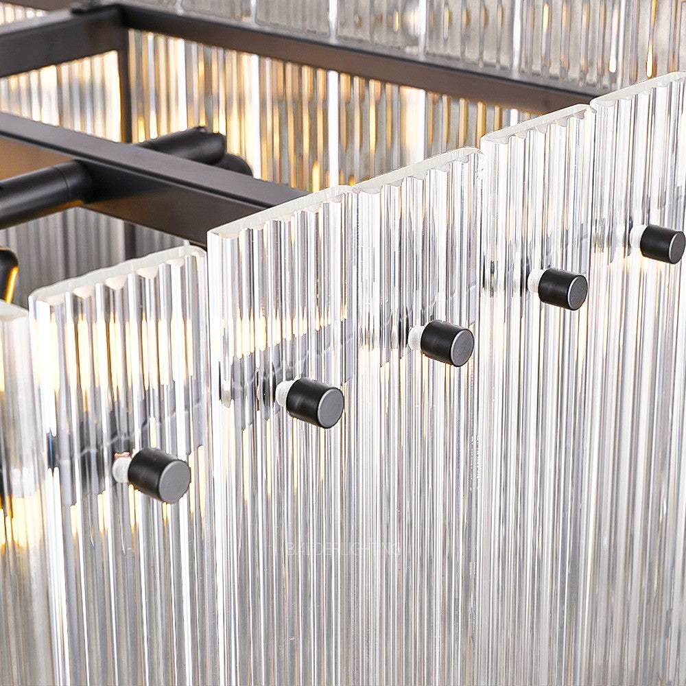 This collection of fixtures features dozens of glass panels that have been hand-raked into grooves within a sleek metal frame, producing dramatic light play and softly diffused light. The glamour of Italian glass fixtures from the 1960s is revisited.