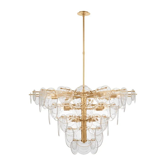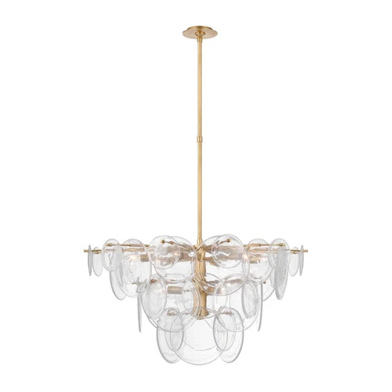 Long Organic Glass Bubble Brass Leaves Branch Chandelier