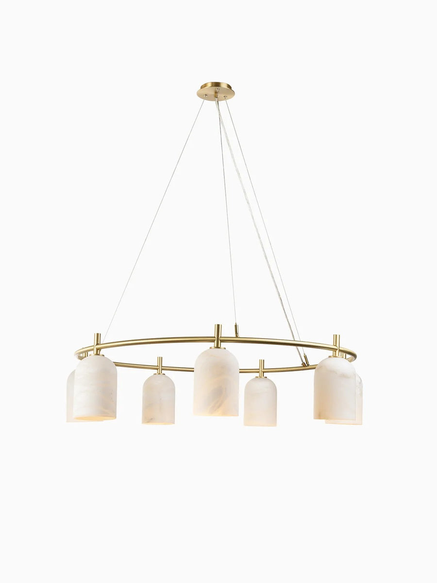 Brass & Black Modern Chandelier Featuring Natural Quartz Rings