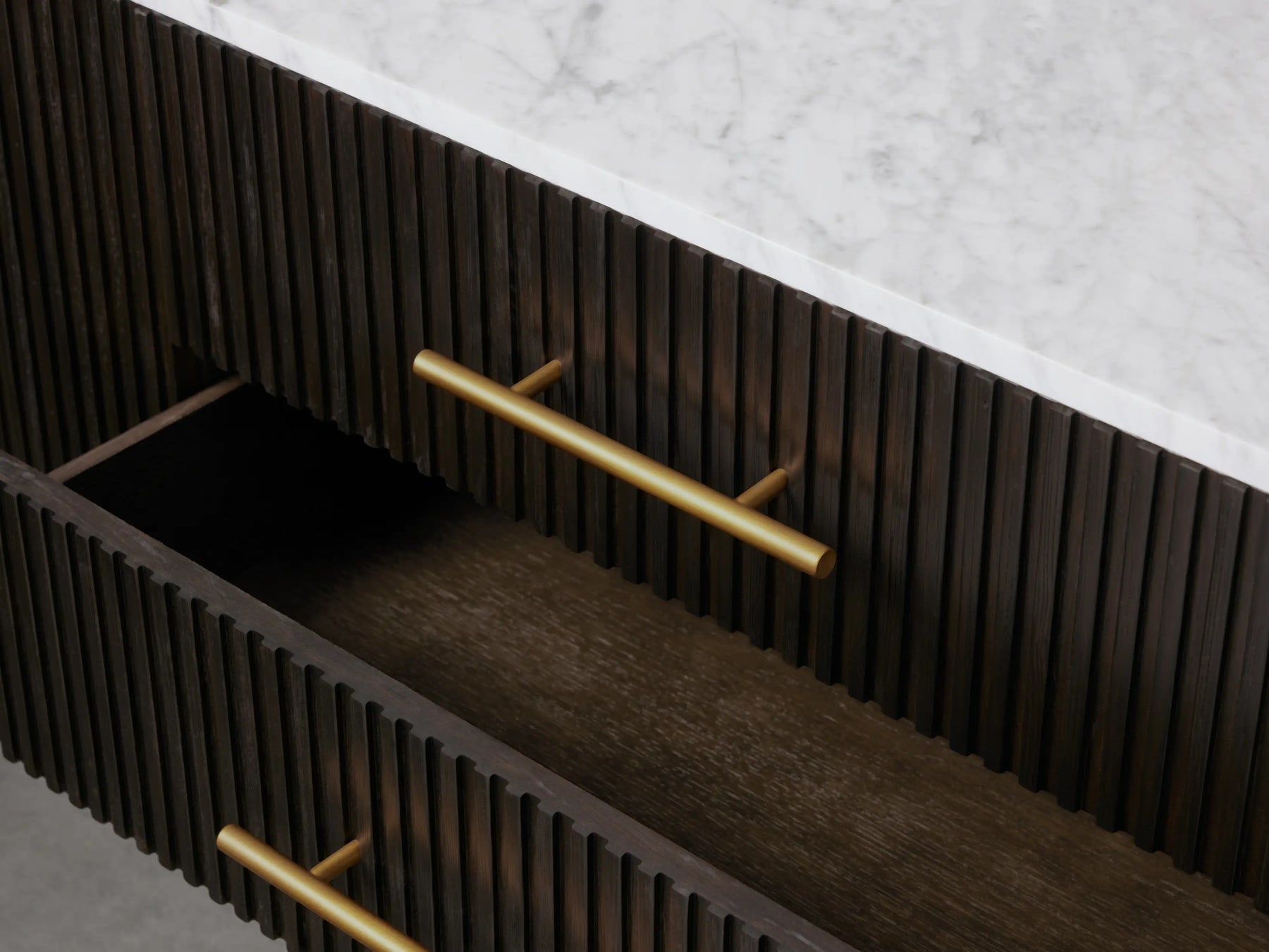 Our Fanny Collection showcases a stunning mixed-material design, inviting elevated style into any space. Hand-finished pine from Finland or white oak wood is luxuriously accented by reeded oak detailing complemented by stone tops. The result is an eclectic-yet-chic accent piece that easily fits into the aesthetic of your home from the living and dining rooms to bedrooms, office spaces, and more.