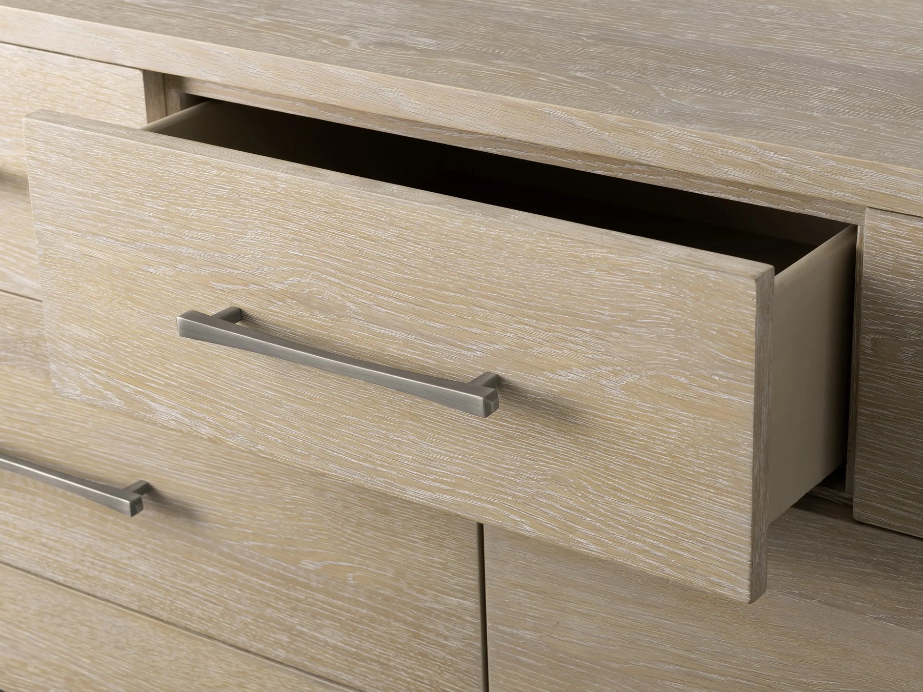 • Drawers sit on under-mounted soft-close glides and feature complementing hardware.