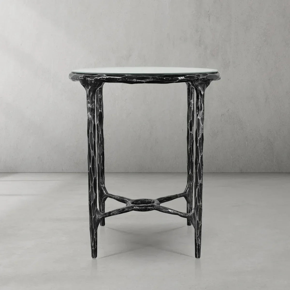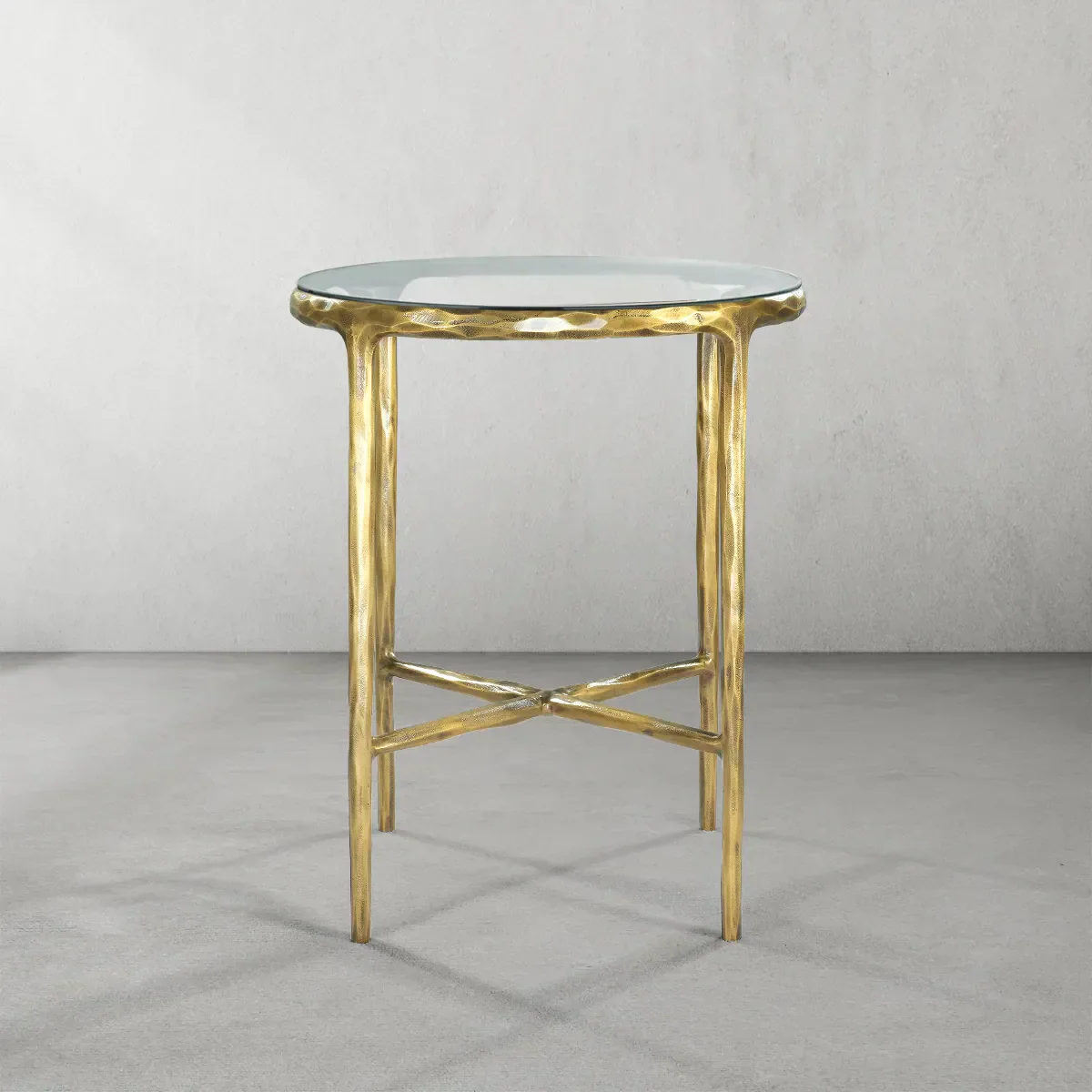 Our hand forged metal with marble collection. Using an age-old production process, artisans hand-hammer metal strips to reveal vibrant, imperfect, organic textures. The hammered, tapered silhouette provides a rich contrast to the smooth, honed stone.