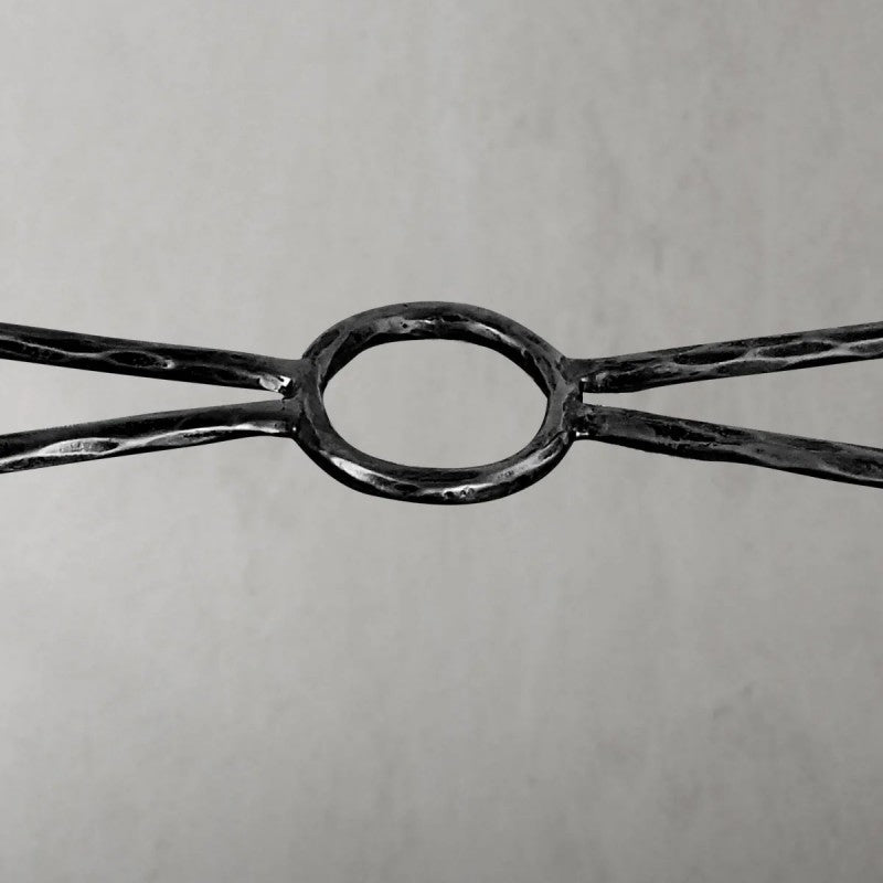 Our collection by the rustic sensibility of hand-forged metal with clean tempered glass. Employing an ancient fabrication process, artisans hand hammer the metal bars to reveal an alive, imperfect and organic texture. The pounded, tapered silhouettes are a rich counterpoint to the smooth, honed stone.