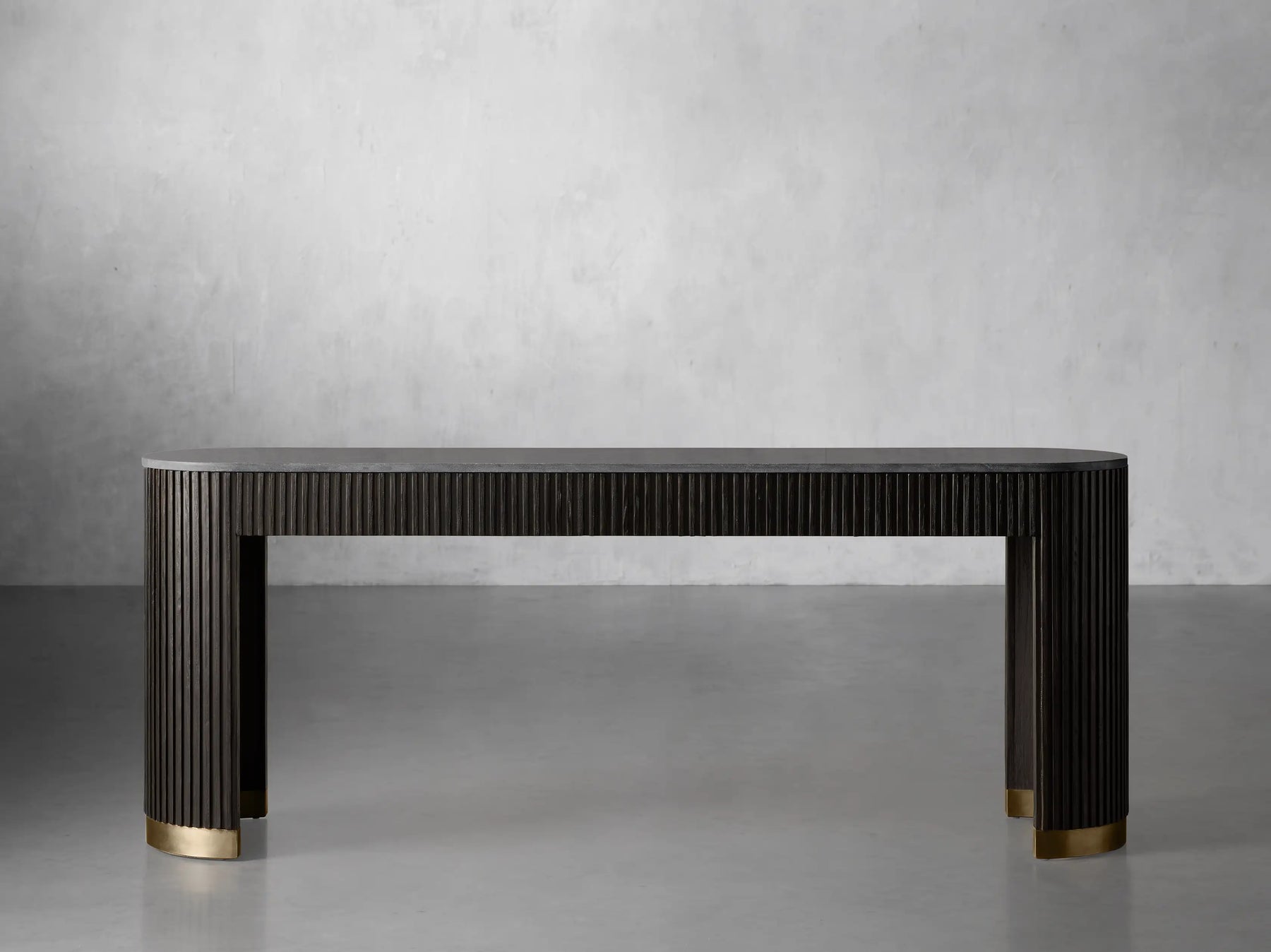 - Zinc-alloy plinth bases feature a light brass finish.