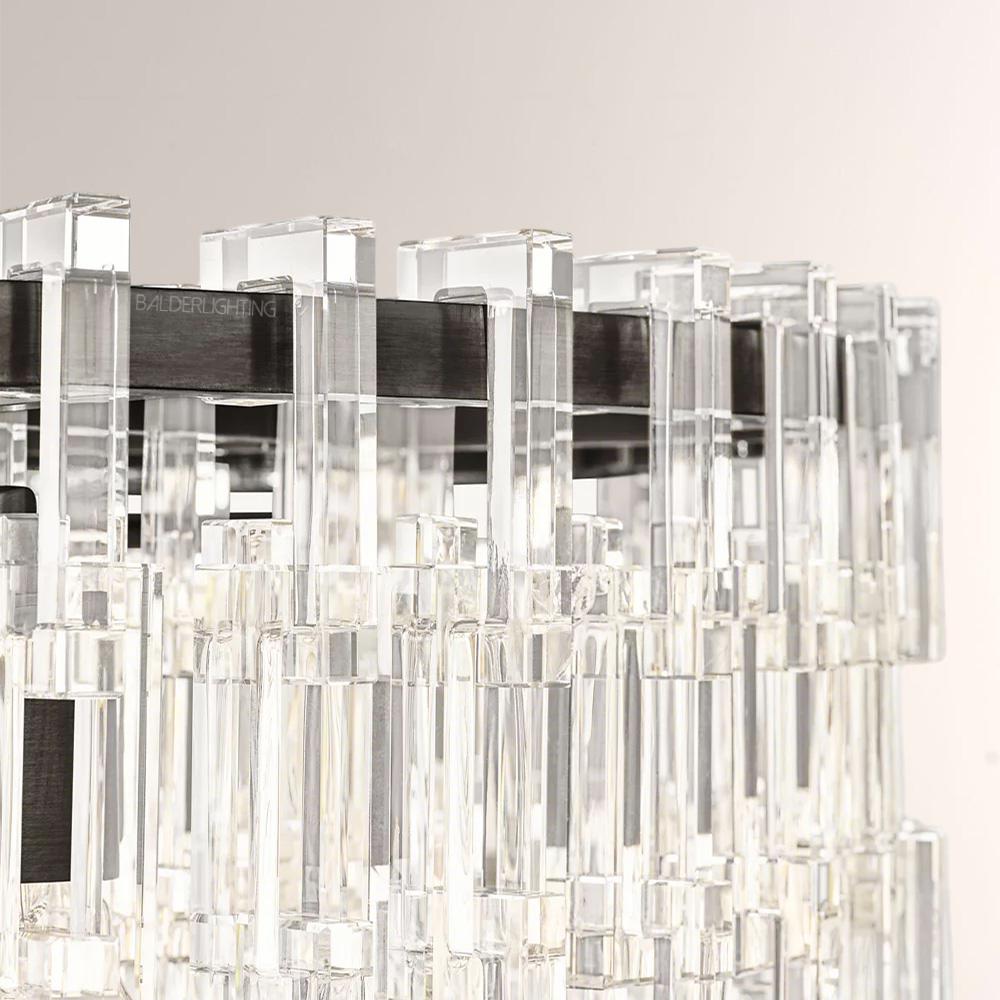 This collection of lamps, pure and minimalist in style, features stunning, interlocking open and closed chains designed with crystalline crystals. The stylized chains are suspended without wires, creating an elegant cascade of shimmering light.