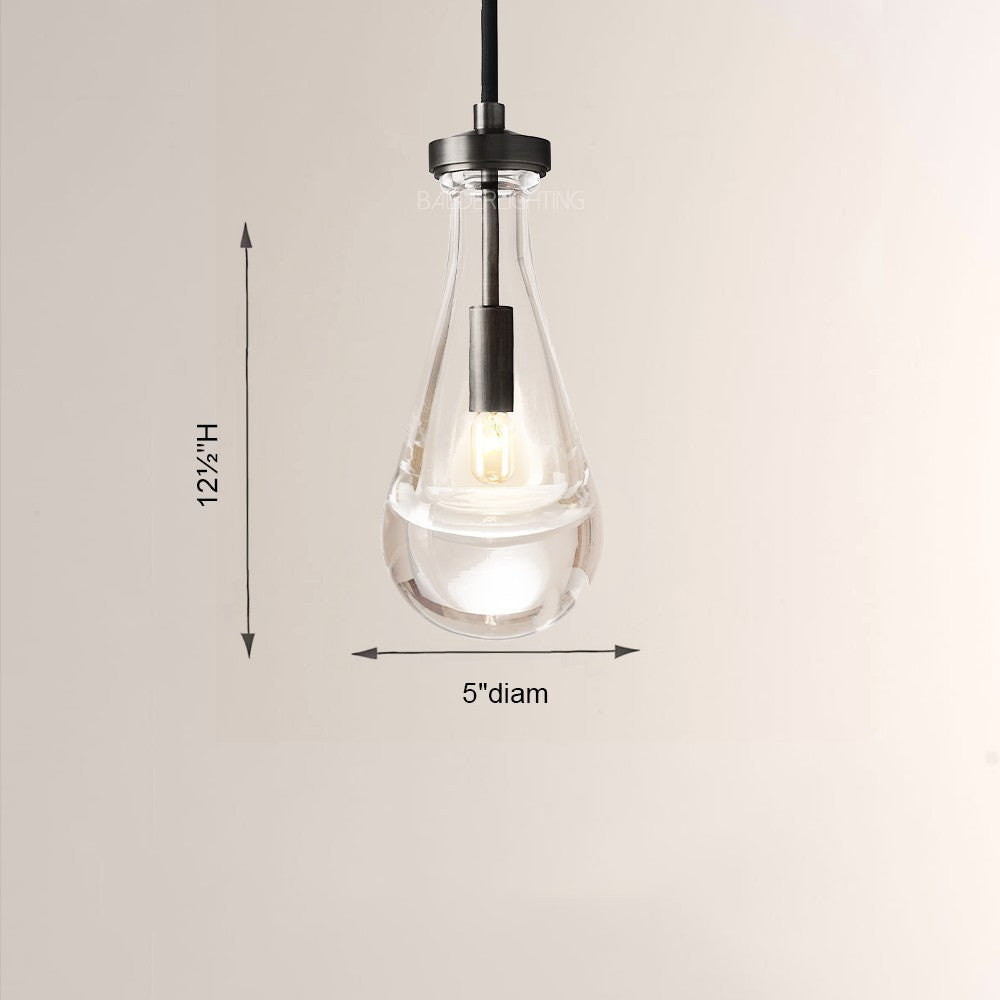Much like the rhythm of a rainstorm itself. Suspended from slim black cords, drops of blown glass encase the bulbs – creating the illusion of underwater illumination – and cast luminous ripples that wash across ceilings and walls.