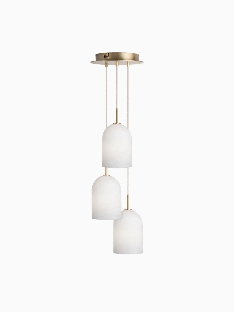 The Rae Chandelier features seven alabaster shades suspended from a Satin Brass frame, creating a warm, welcoming glow that beautifully diffuses light. Perfect for above a dining table or as a statement piece in your living area or bedroom, this elegant pendant effortlessly transforms any space into a relaxing atmosphere as day turns to night.