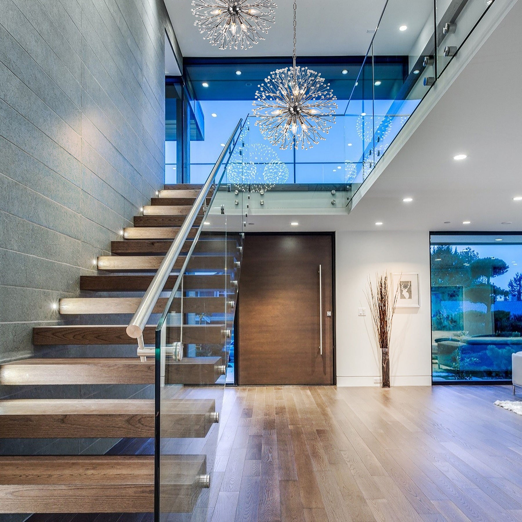 Amoy Multi-LED Glass Staircase Chandelier 36''D (customized)