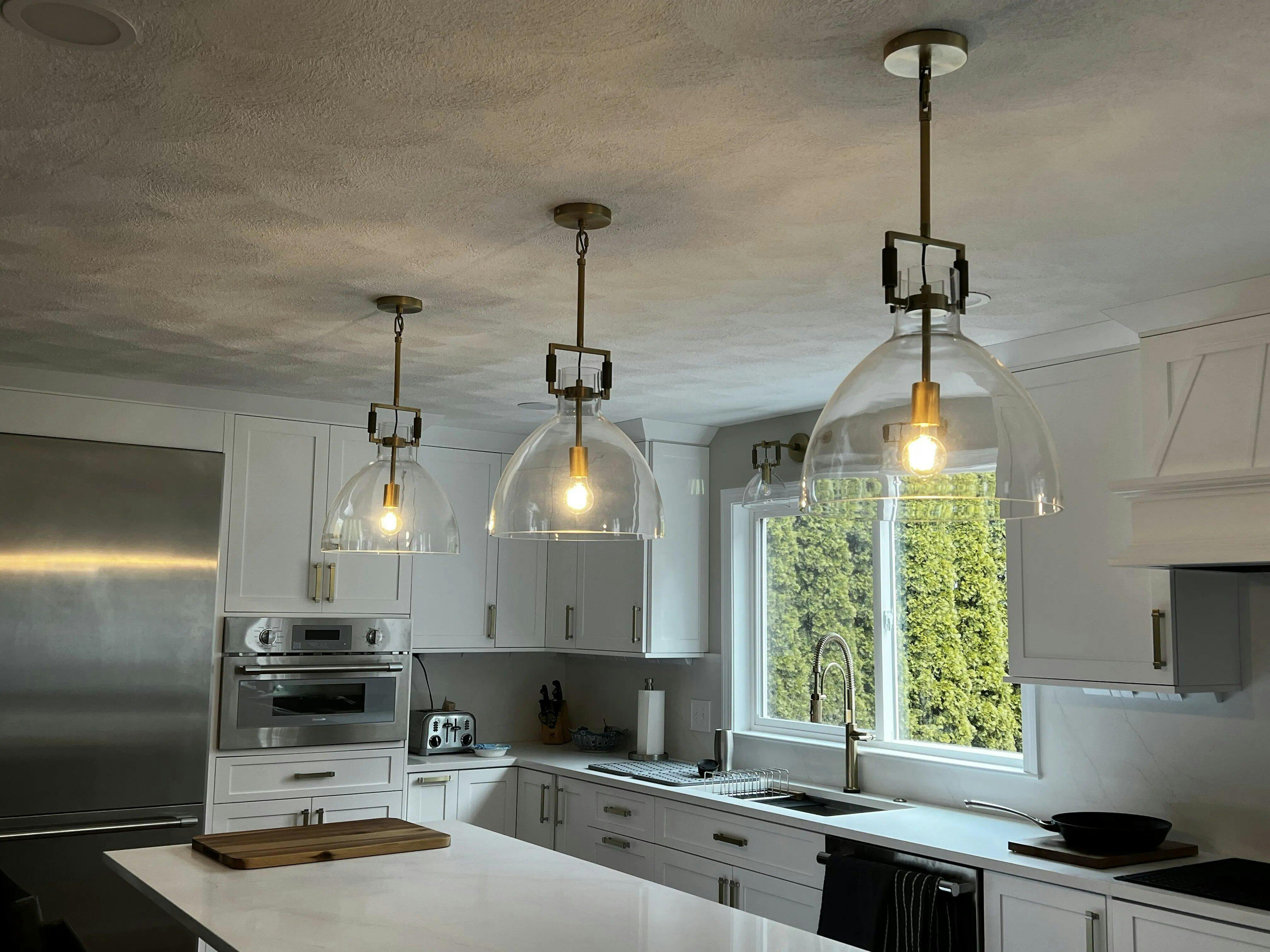 Introducing our exquisite collection crafted with glass and solid copper. Designed for kitchen islands, these stunning pieces combine elegance and functionality. The captivating blend of glass and copper creates a mesmerizing ambiance, adding a touch of sophistication to your space. Elevate your kitchen decor with this timeless collection that seamlessly merges style and practicality.