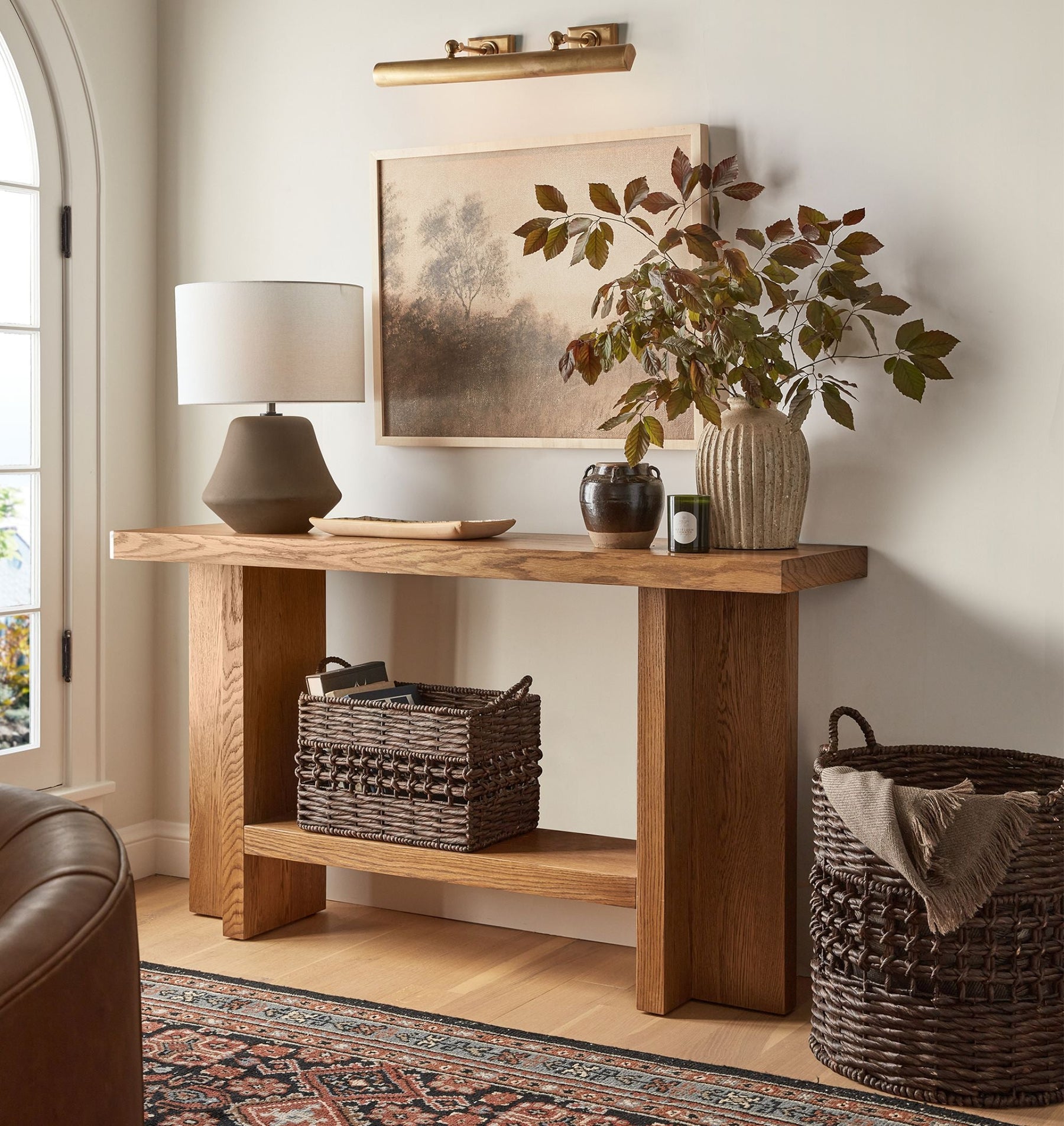 This Led picture light is made of brass with integrated Led panel. The soft lights source gives a focused swath of light.