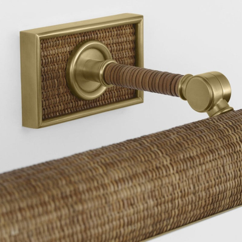 - Finish: Antique-Burnished Brass and Natural Woven Rattan