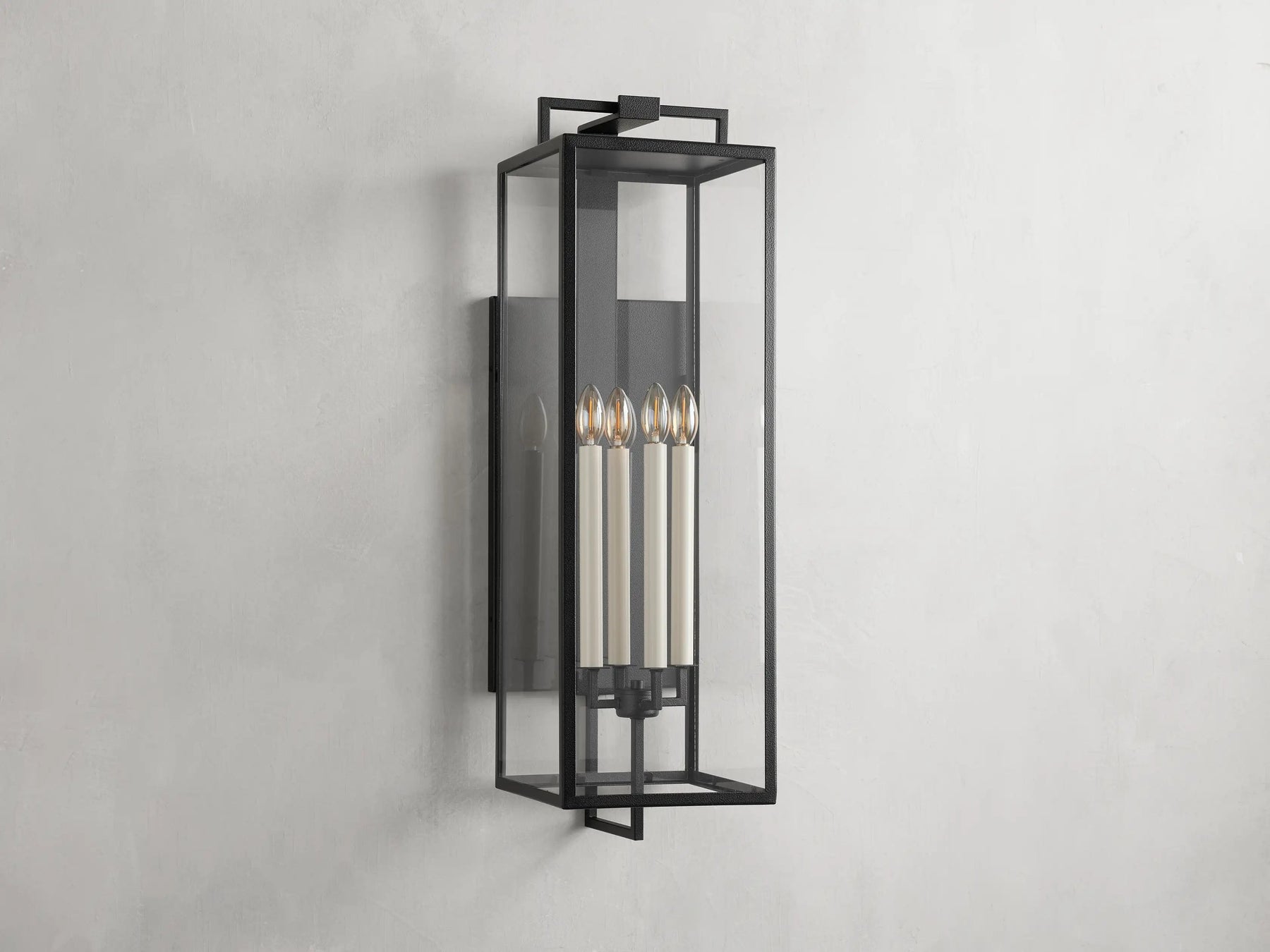 Pairing a slender frame with wide paneled glass, our Hendricks Collection creates a stately aesthetic. Crafted from hand-worked iron, Hendricks’ simple-yet-elegant design will add charming illumination to your porch, patio, and beyond.