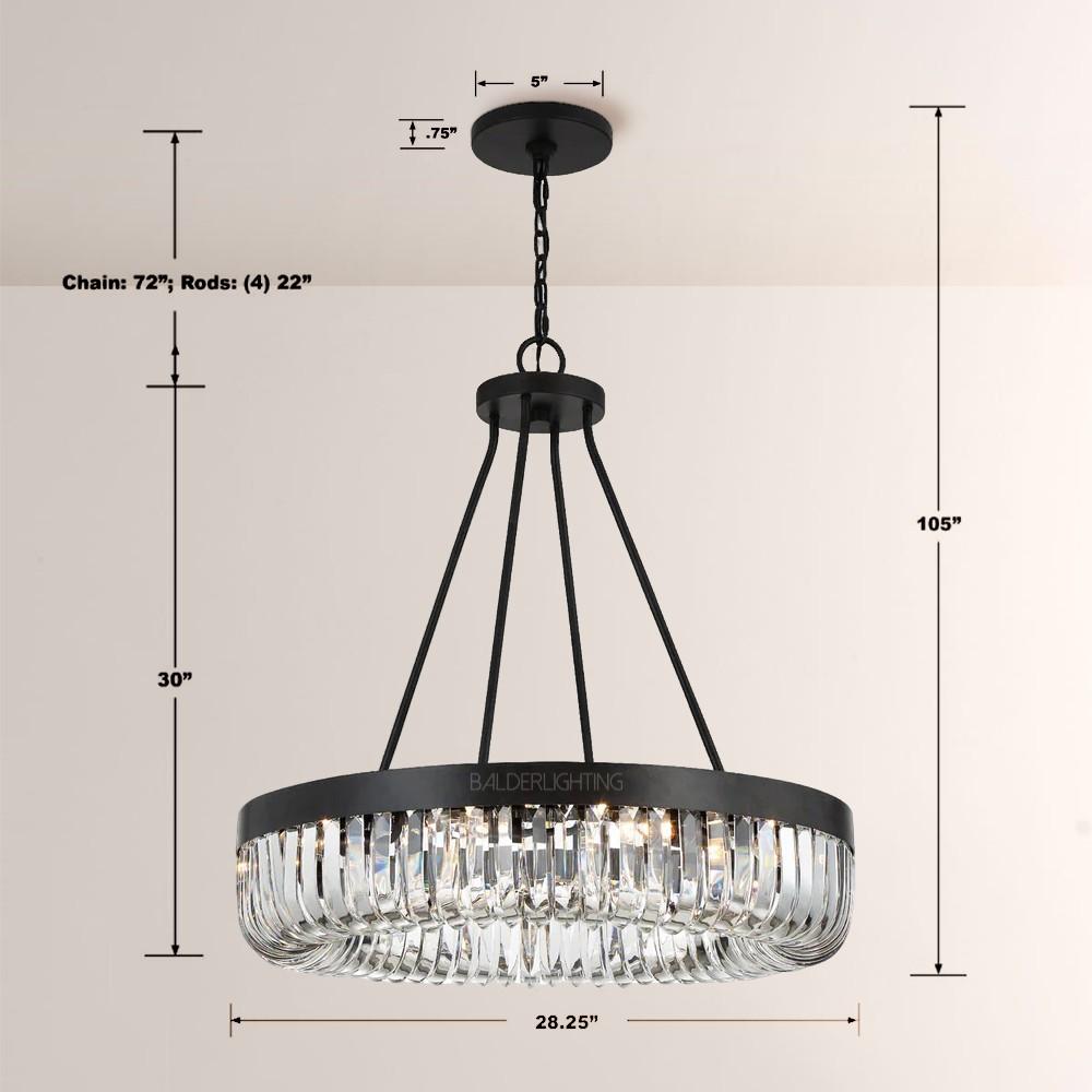 - Overall: 28.25"W x 30"H x 28.25"DCanopy: 7"W x 0.75"HHanging Weight: 36.50 lbs