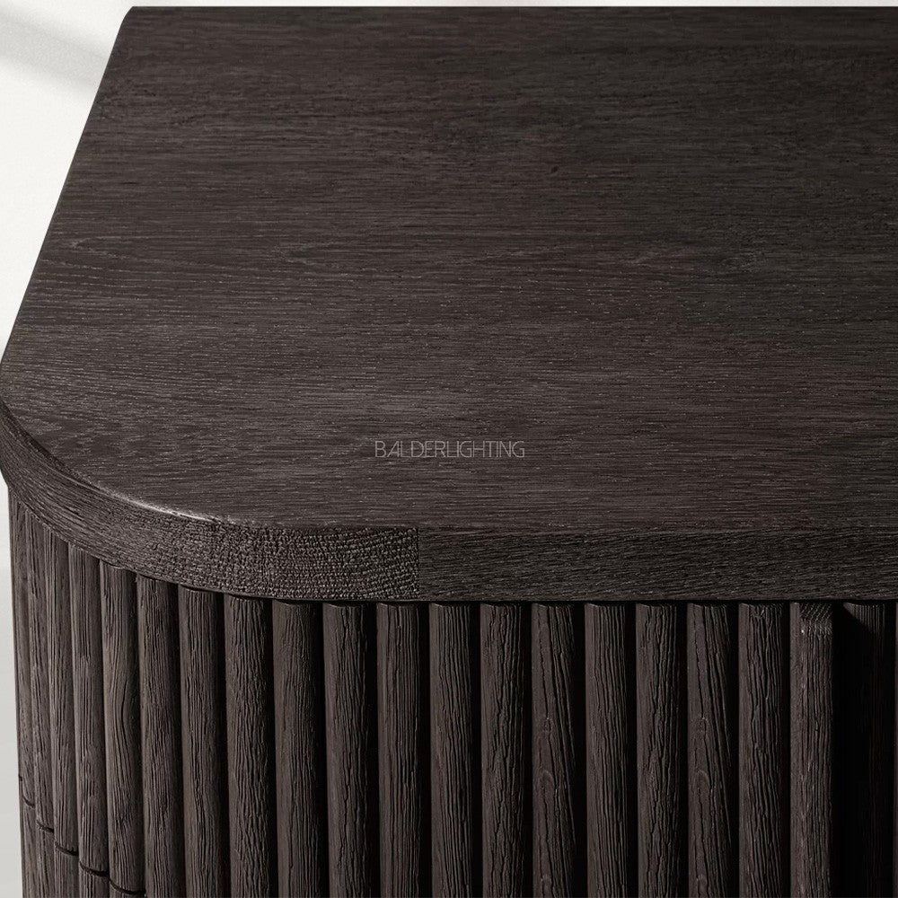 Defined by individually applied reeds of wire-brushed solid American oak. The collection features radius corners that curve around the side for an uninterrupted, fluid silhouette.