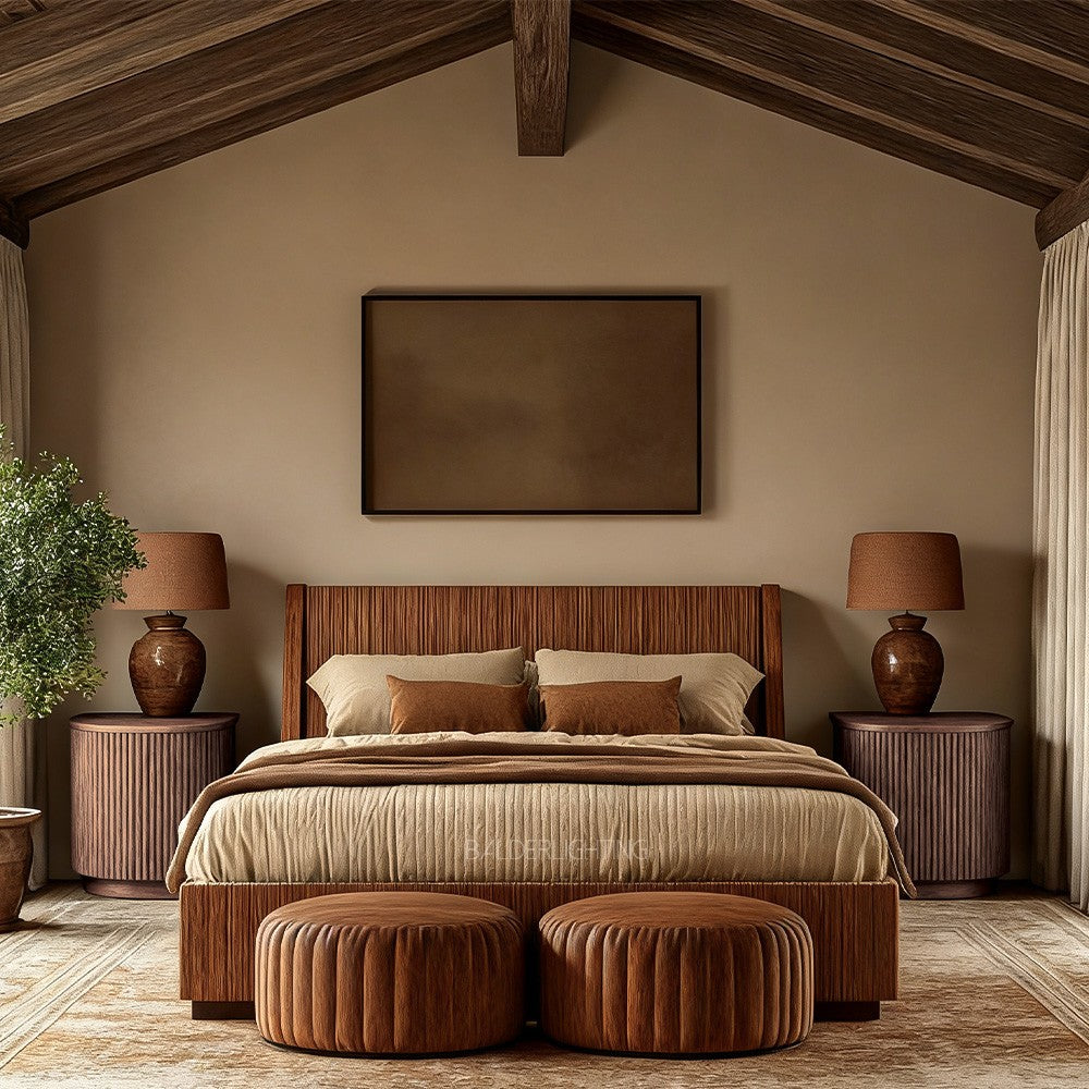 Crafted by the renowned design duo Mulholland Bina and Ronald Sasson, the Mulholland Open Nightstand exemplifies elegance and innovative design. Defined by its unique wire-brushed solid American oak reeds, this table stands out with its sophisticated texture and organic appeal. The design is softened by radius corners that curve around the sides, creating a fluid, uninterrupted silhouette that commands attention.